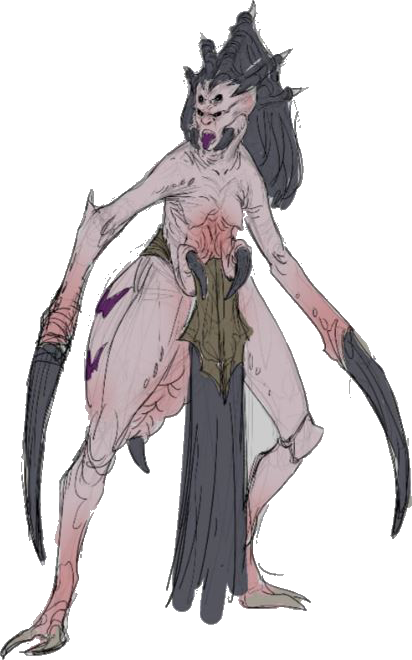 Where other beings have been molded by mutations into something more than human, the disciples of the weavers, through atrocities passed down from generation to generation, have voluntarily descended each rung of a spiraling staircase to abjection. They have renounced any vestige of humanity and have given themselves over to a depravity that brings them ever closer to madness and damnation. It is in this cycle of devotion and mutilation that their humanity dissolves, leaving only twisted shells that, over time, may become indistinguishable from the monstrous deities they so venerate.